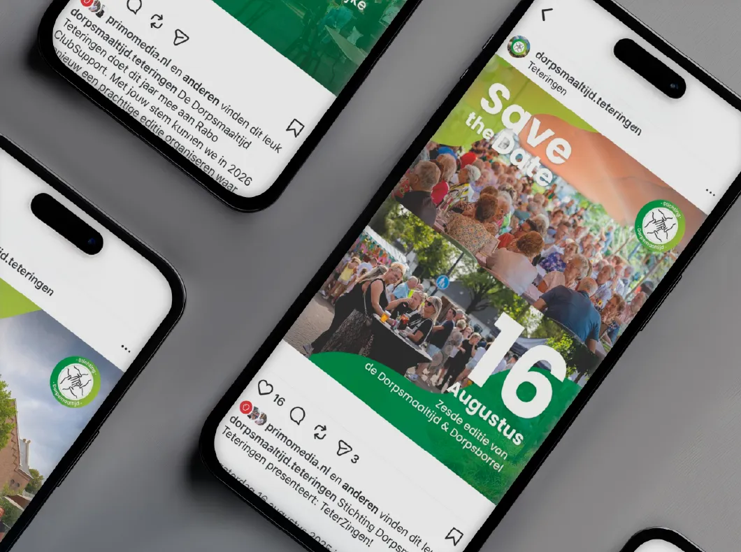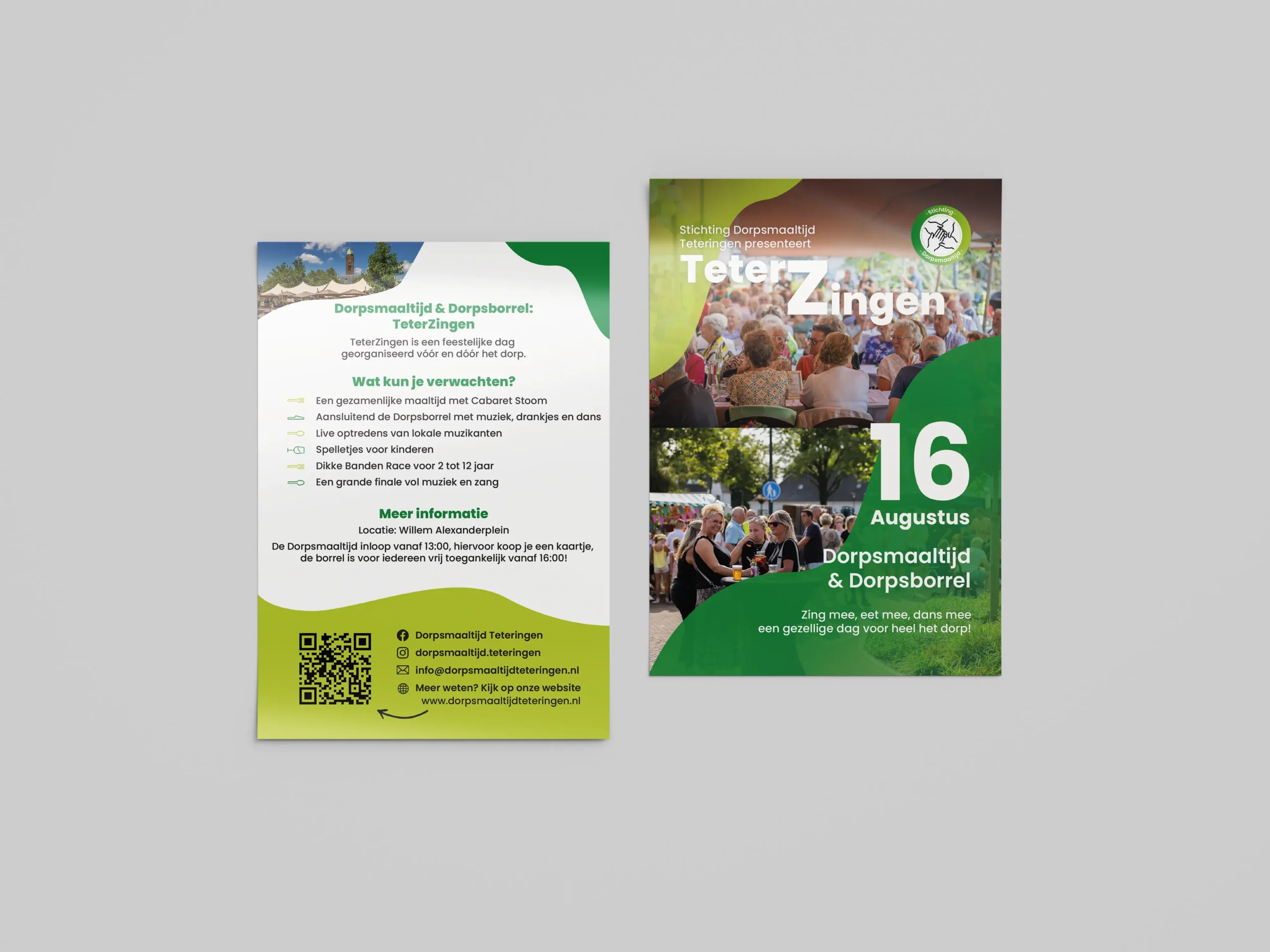 Voor Stichting Dorpsmaaltijd Teteringen mocht ik het design en de promotie verzorgen voor de 6e editie in 2025. Het doel: een aantrekkelijke en samenhangende visuele uitstraling creëren die bezoekers informeert en enthousiasmeert voor het evenement.
